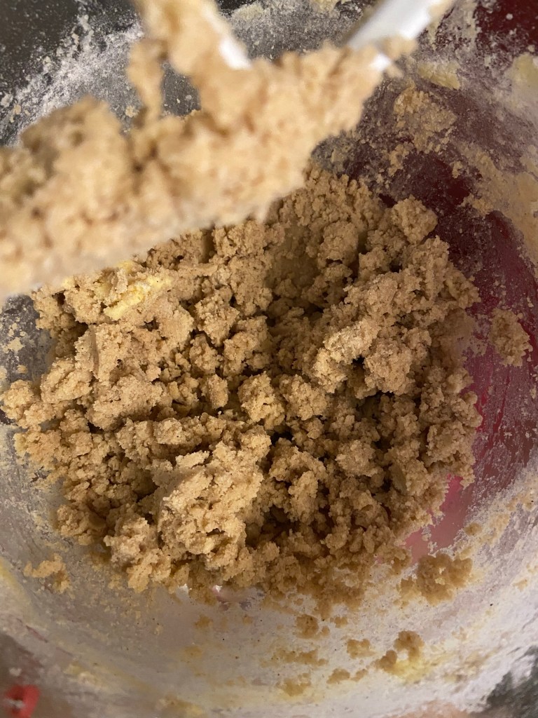 - To start the biscuit base cream together the butter and the sugar until light and creamy. Add in the flour and spices and mix until a very crumbly dough forms. I have included a photo of what mine looked like!